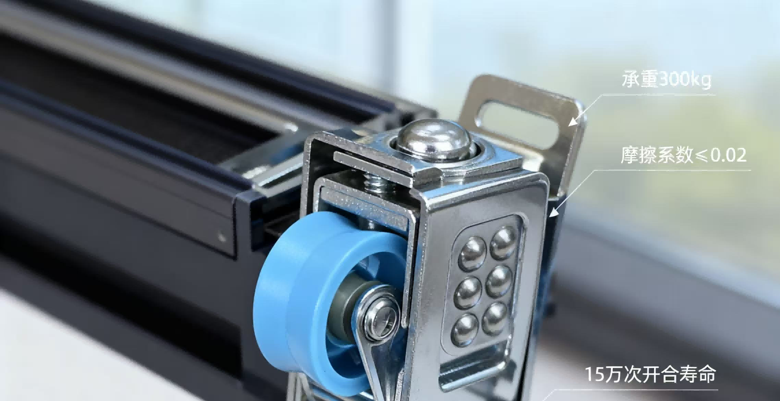 The application of new materials is driving a leap in roller performance. Glass-fiber-reinforced nylon and carbon fiber composite products offer 30% greater wear resistance than traditional materials, extending their weather resistance range to -40°C to 80°C. The German aluPilot series rollers can support up to 300kg per set, supporting large window sashes. Structurally, the “multi-ball bearing + sealed cavity” design reduces the friction coefficient to 0.02, extending the service life to 150,000 opening and closing cycles. Some silent and energy-saving models also help reduce the heat transfer coefficient of doors and windows, complying with passive house standards.